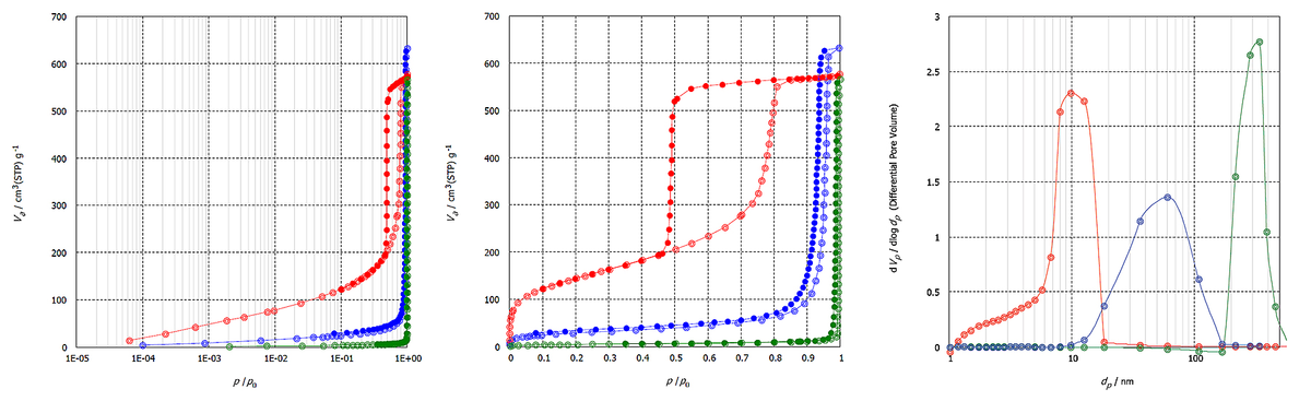آزمون‌ها SSA (مساحت سطح ویژه)، BJH (توزیع اندازه حفره)، جذب و واجذب